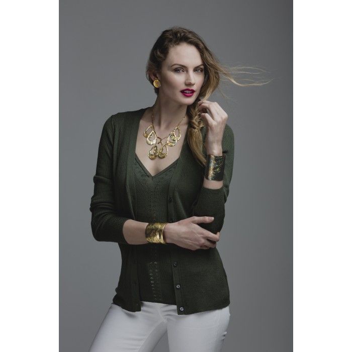 22K Gold Leaf Bangle – This elegant and versatile bangle looks great alone or stacked with other bangles. The 22K gold leaf adds depth and character and an ancient, old world feel.
