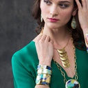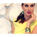 The sophisticated bold abstract image on this bracelet is designed to capture the vibrant energy of a modern united Berlin. Handmade in the USA, the rich golds and blues are artistically accentuated with a splash of eye-catching purple and green. Wear this one-of-a-kind cuff with denim or silk and add a fresh chic, modern touch.